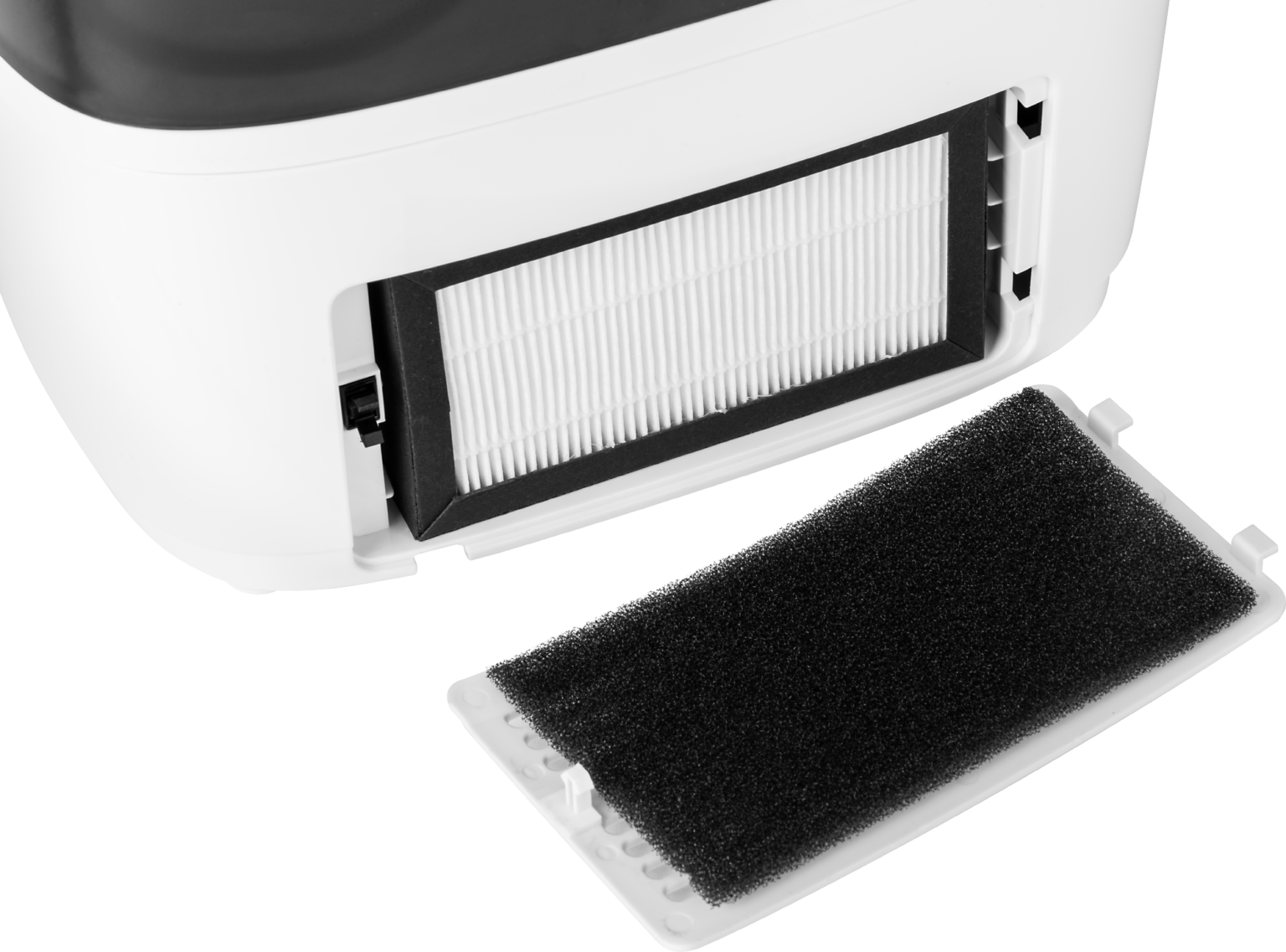 The humidifier is also equipped with a top triple filtration. It contains a replaceable HEPA filter 11, an active carbon filter, a Pre-filter and, as a bonus, a water filter. Thanks to the HEPA filter, the humidifier also serves as a mini air purifier, as it is primarily a matter of filtering a large amount of dust from the air. The entire filter space is the same size as the one for humidification.