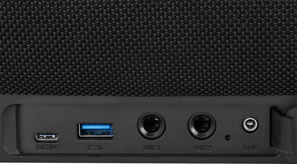 The advantages of the ECG B.TONE 7100 BIGFOOT wireless speaker include the possibility of connecting a microphone, which is also included in the package. You can use the device not only to listen to music, but also to organize an unforgettable karaoke party or to effectively moderate smaller social events. If you want to show off your singing talent with your friends, you will certainly appreciate the fact that you can connect two microphones at once to this speaker (using two 6.3mm jack connectors).