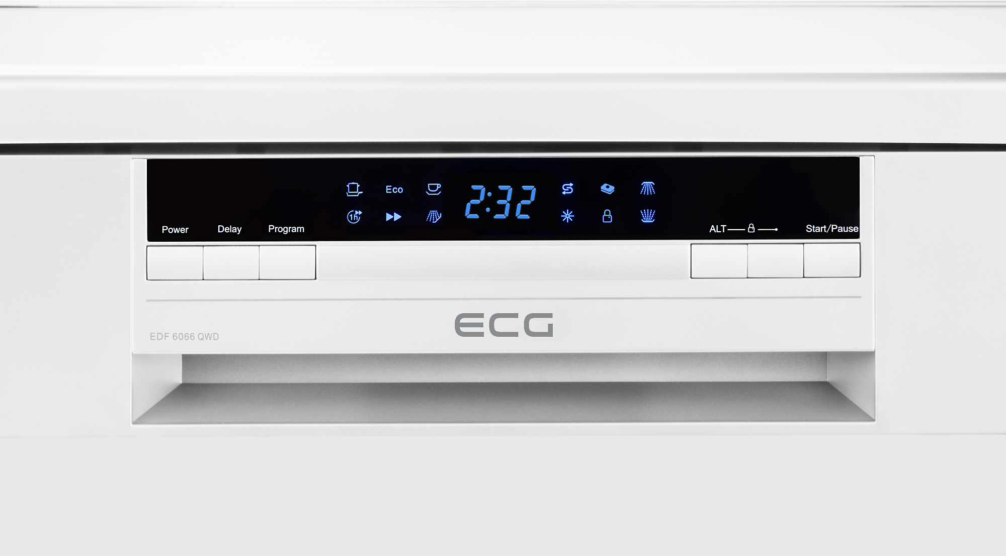 The ECG EDF 6066 QWD free standing dishwasher belongs among the class of dishwashers with standard width of 60 cm. This model is ready to wash up to 14 dining sets, which is very convenient for family celebrations or other large events.