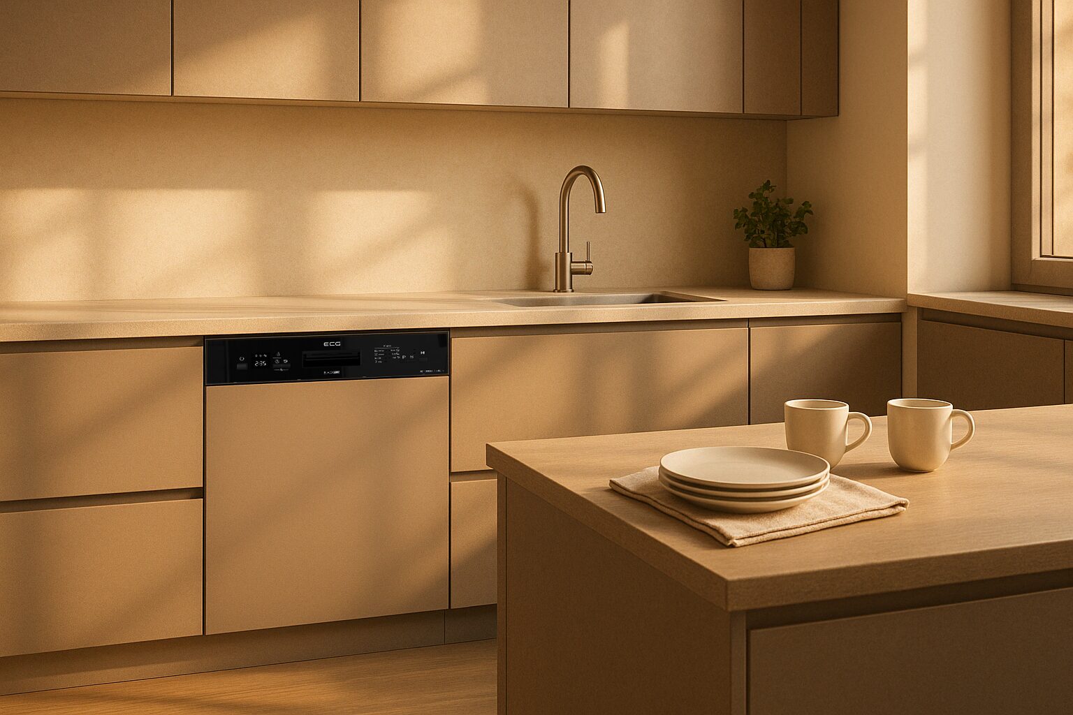 ECG EDS 300763 BlackLine is a semi-built-in dishwasher that adapts perfectly to any kitchen. The customer buys a dishwasher with a black control panel, and the front door can be fine-tuned according to their own style and design of the kitchen unit. Thanks to this, it really fits anywhere - from a modern interior to a rustic kitchen.