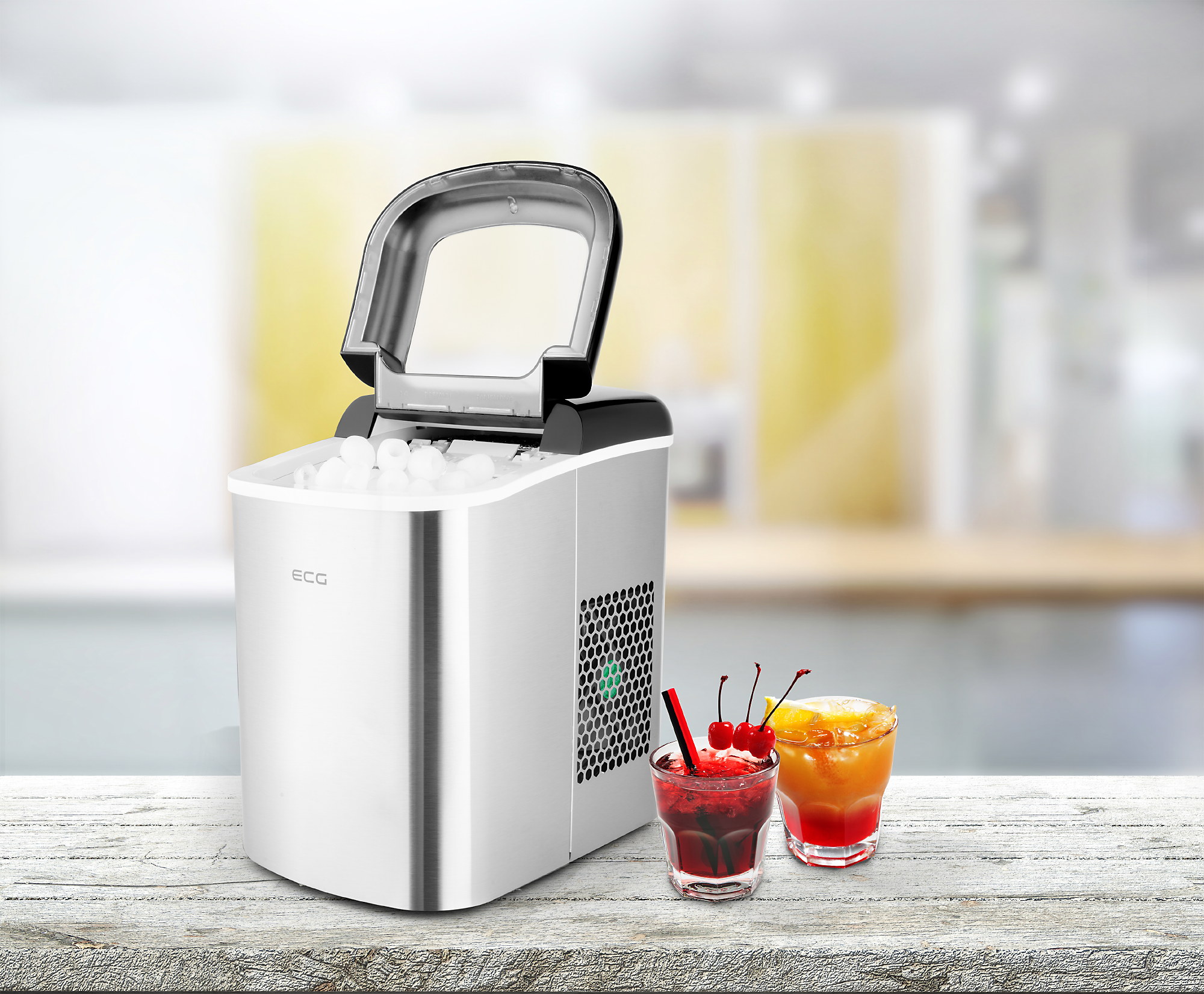 The compact ice maker ECG ICM 1253 Iceman appeared in the world to make hot summer days a little more bearable and pleasant for you. This handy gadget can make ice cubes with ease of a magic wand; you can then use them to improve you favourite drink. In addition, the device stands out with its nicely crafted stainless-steel design