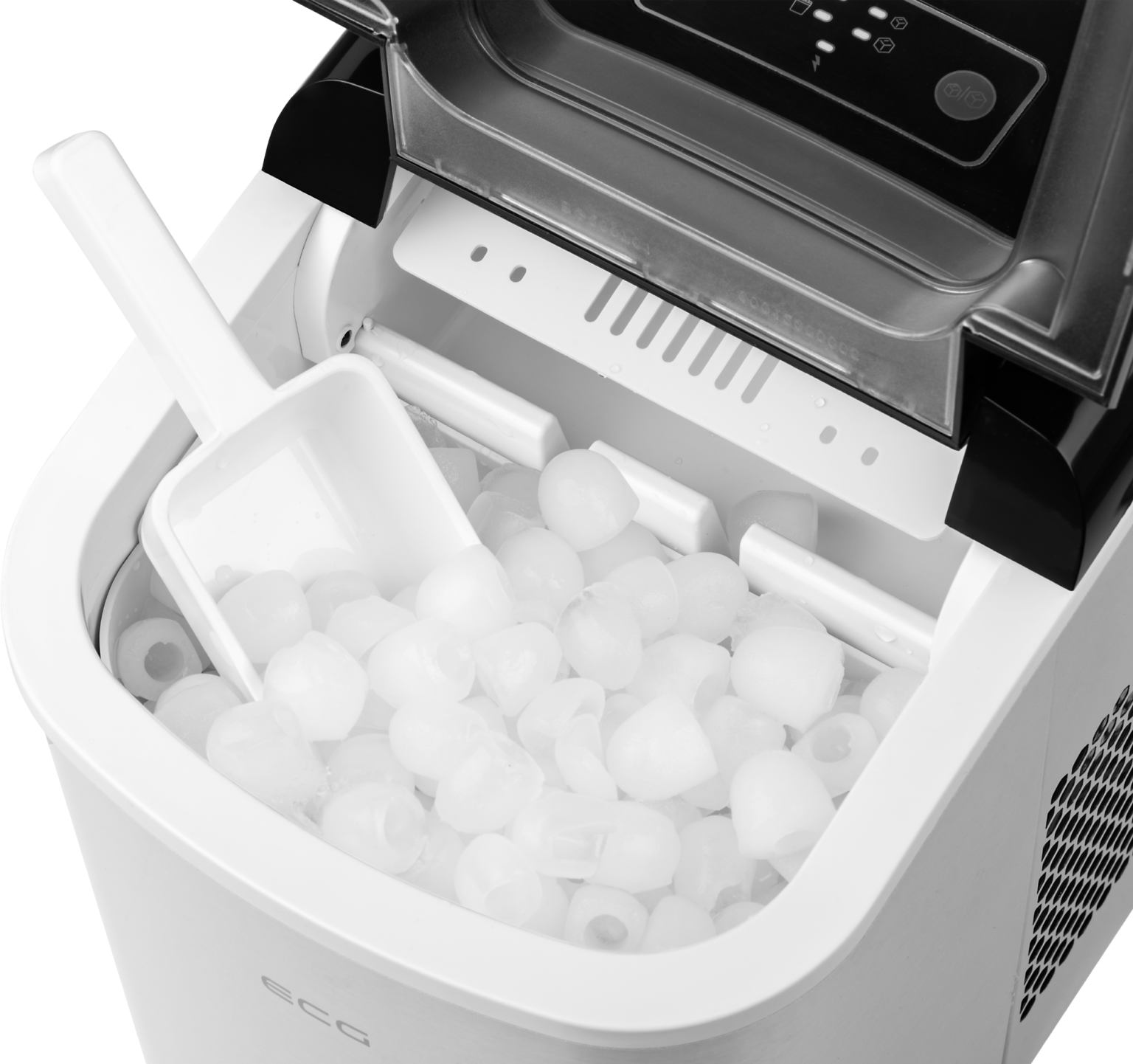 ECG ICM 1253 Iceman will help you to make up to 12 kg of ice per day. You can regularly give pleasant refreshment on hot summer days not only to the whole family, but also to more numerous visitors. Thanks to the intuitive controls absolutely anyone can handle the handy device. The inlet tank of our ice maker can hold up to 1.9 litres of water, the capacity of the ready ice bucket is then 0.7 litres. The built-in indicators are also practical, alerting you if there is a lack of water in the appliance or if the ice bucket is full.