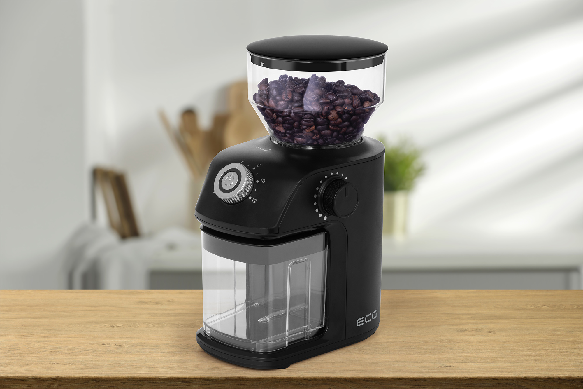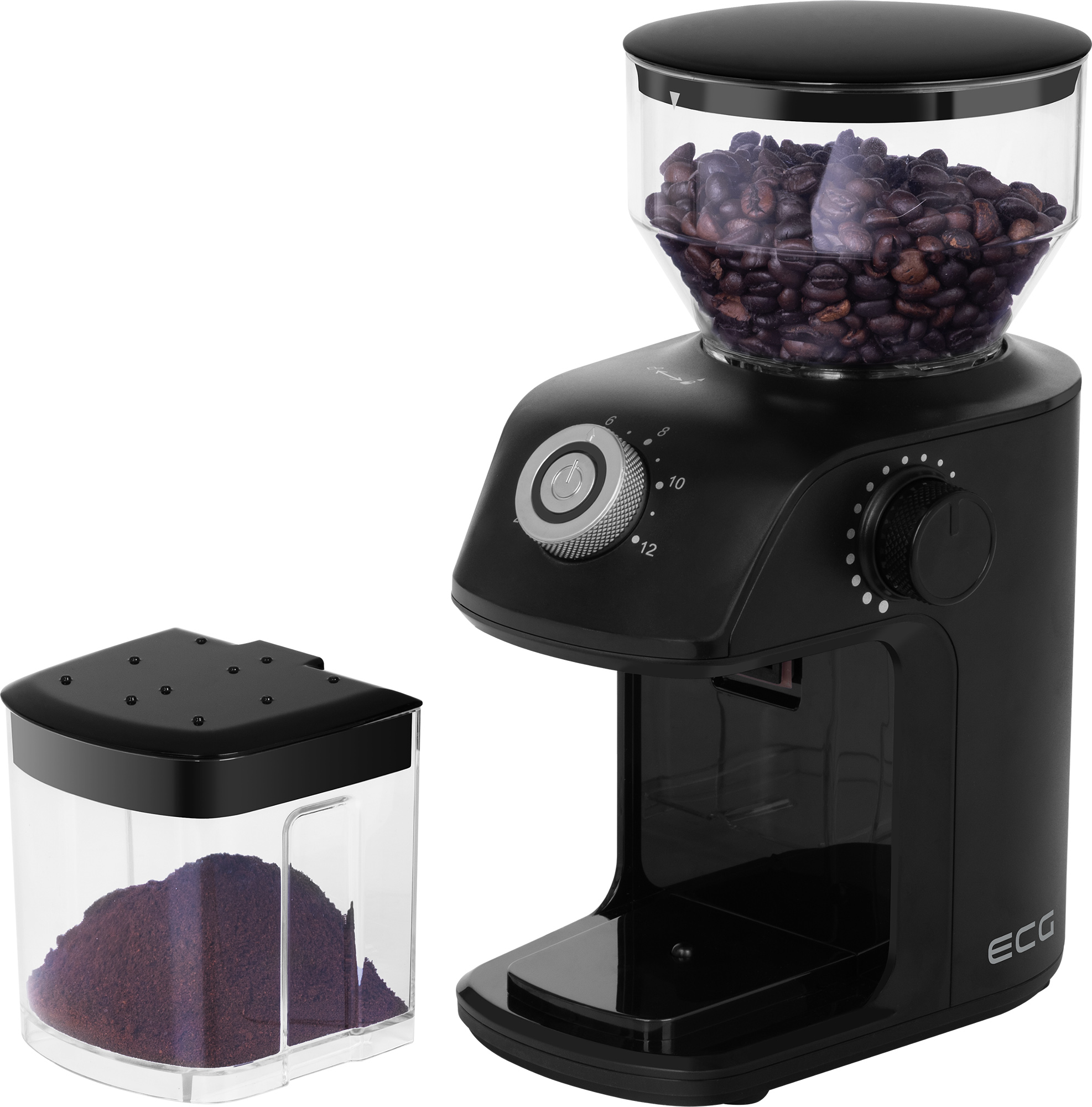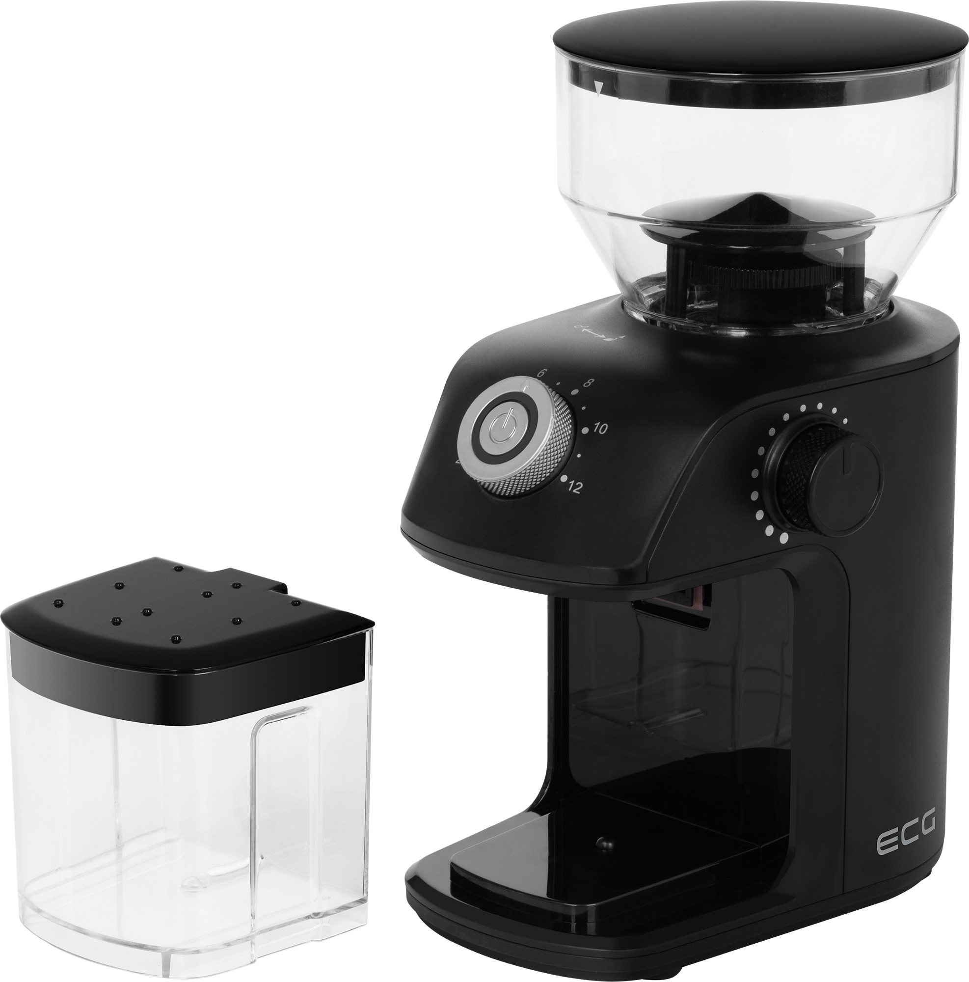 The ECG KM 1500 Medio coffee grinder is a welcome companion for all lovers of high-quality, freshly ground coffee. Thanks to its compact design and elegant black finish, it will fit into any kitchen without any problems and will become an indispensable assistant for your daily coffee ritual. Start your morning the way you like it – with the aroma of authentic and perfectly prepared coffee from the ECG KM 1500 Medio grinder. With a capacity of 240 g of beans, this grinder has enough space to prepare coffee for several cups at once. The second container can hold up to 140 g of already ground coffee.