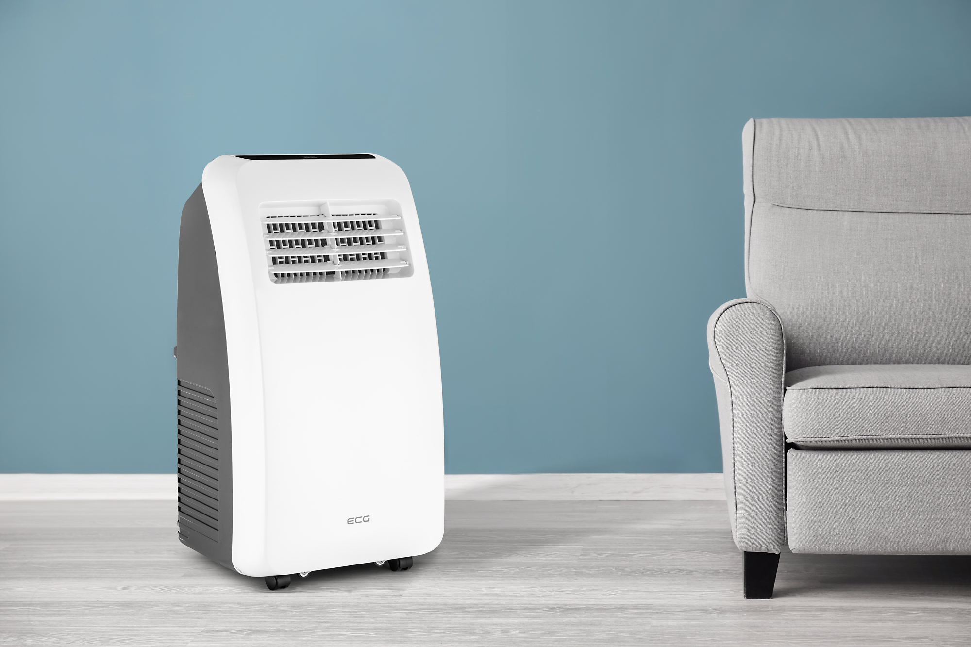 The ECG MK 94 air conditioner’s functions also include a timer on or off. You can use it to set time when the appliance switches on or off. " Controlling the air conditioning is completely intuitive, so you'll master it in literally no time. The electronic control panel perfectly complements the LED display, which informs you about the current setting of the air conditioning unit. And if you do not want to get up from your easy chair, you can control it using the practical remote control.