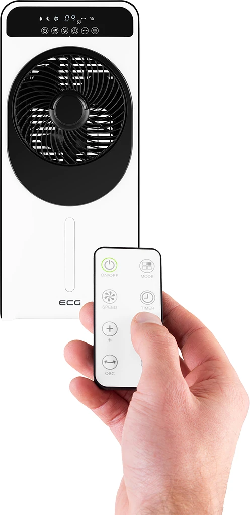 Ventilator and air humidifier ECG Mr. Fanboy you can operate without the slightest problem. The device is equipped with a clear LED display and a touch control panel. To top it all off, you also get a practical remote control. For both functions that this device offers (ventilation, humidification), you can also use a timer that ensures automatic shutdown after a selected time (up to 9 hours).