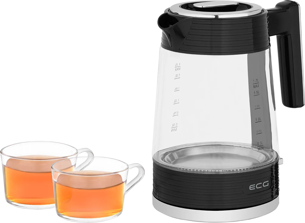 The ECG RK 1750 electric kettle from the Stripe design series will impress you at first glance with its elegant appearance, which combines tempered glass, robust high-gloss plastic and stylish chrome accessories. Due to its 1.7 liter volume, it is also ideal for preparing a larger amount of hot water at once - it will be great for example when you are hosting a guest and need to quickly prepare tea or coffee for several people at once. The practical water mark allows you to easily monitor the amount of water inside, so you have everything under control. The kettle operates with a power of 1850–2200 W, so it can heat water for tea or coffee extra quickly. You are reliably informed about its current operation via the stylish blue backlight. Last but not least, the storage space for the power cord located in the base is also a practical feature.