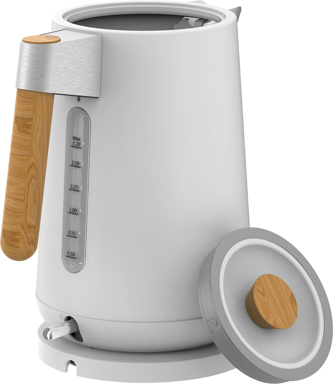 Get the ECG RK 1768 Strix Timber White kettle and you'll get a reliable helper for everyday tea and coffee preparation, as well as a tasteful kitchen decoration. We’ve designed this small appliance to catch your eye at first glance – we’ve given it a white stainless-steel finish and accentuated its attractive appearance with stylish wooden elements.