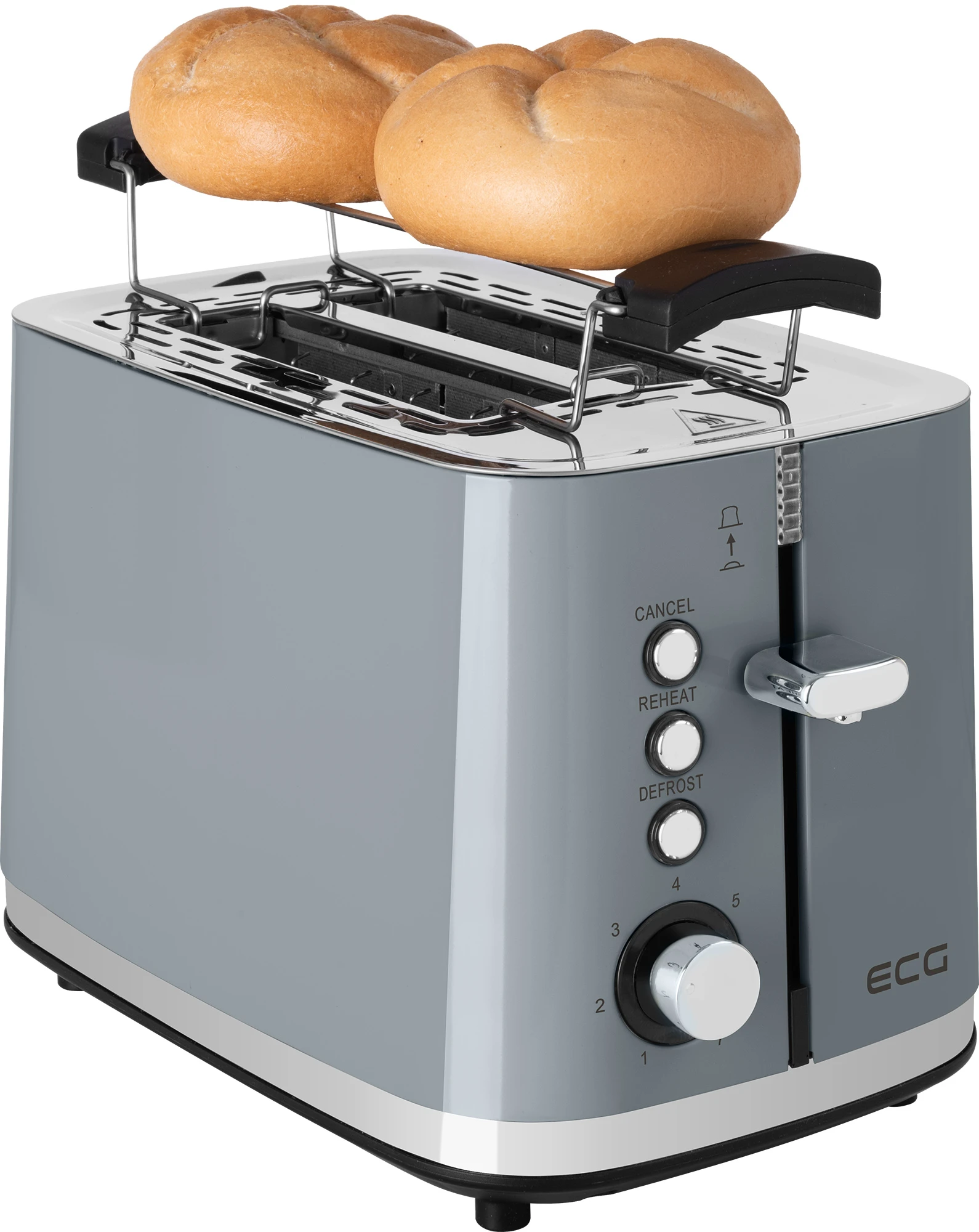 Do you believe that a hearty breakfast is the basis of a successful day? If so, the ECG ST 2766 Vintage Scuro is the right kitchen helper for you. You can use it to prepare irresistibly crispy toasts for yourself and your loved ones every morning. Whether you prefer them salty or sweet, you won’t go wrong with this toaster. You get a tool for preparing delicious delicacies, as well as a tasteful kitchen decoration – we have given this small appliance a grey finish made of high-quality stainless steel, emphasising its attractive appearance with stylish stainless steel elements.