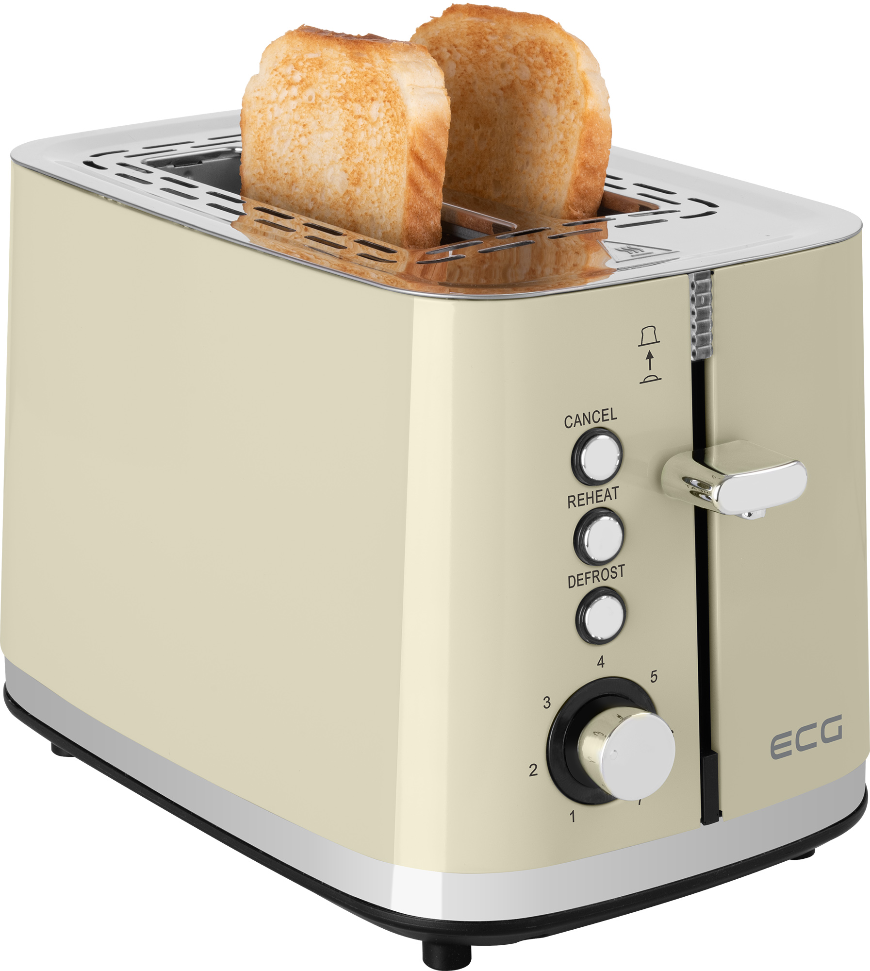 The ECG ST 2766 Vintage Vanilla toaster is safe to use at all times. To prevent unnecessary burns, we have provided it with thermally insulated walls and to keep it stable during operation, we have also equipped it with non-slip feet.