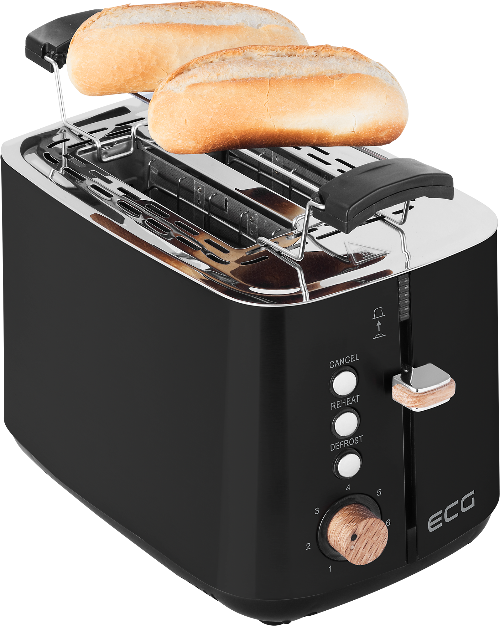 Do you believe that a hearty breakfast is the basis of a successful day? If so, the ECG ST 2768 Timber is the right kitchen helper for you. You can use it to prepare irresistibly crispy toasts for yourself and your loved ones every morning. Whether you prefer them salty or sweet, you won’t go wrong with this toaster. You get a tool for preparing delicious delicacies, as well as a tasteful kitchen decoration – we have given this small appliance a black finish made of high-quality stainless steel, emphasising its attractive appearance with stylish wooden elements.
