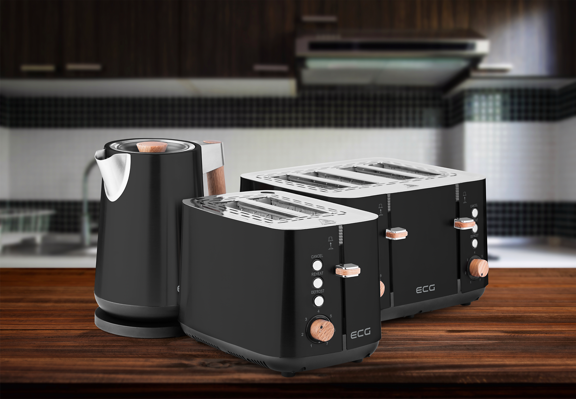In addition to this handy helper, the ECG Timber Series also includes a larger toaster (with 4 toast compartments) and an electric kettle. All these appliances have a uniform design, so they can be beautifully combined in the kitchen. They are available in two colour options – stylish wooden elements are combined with either classic or black stainless steel. Choose a design that suits your style and build a breakfast set at home exactly according to your taste.
