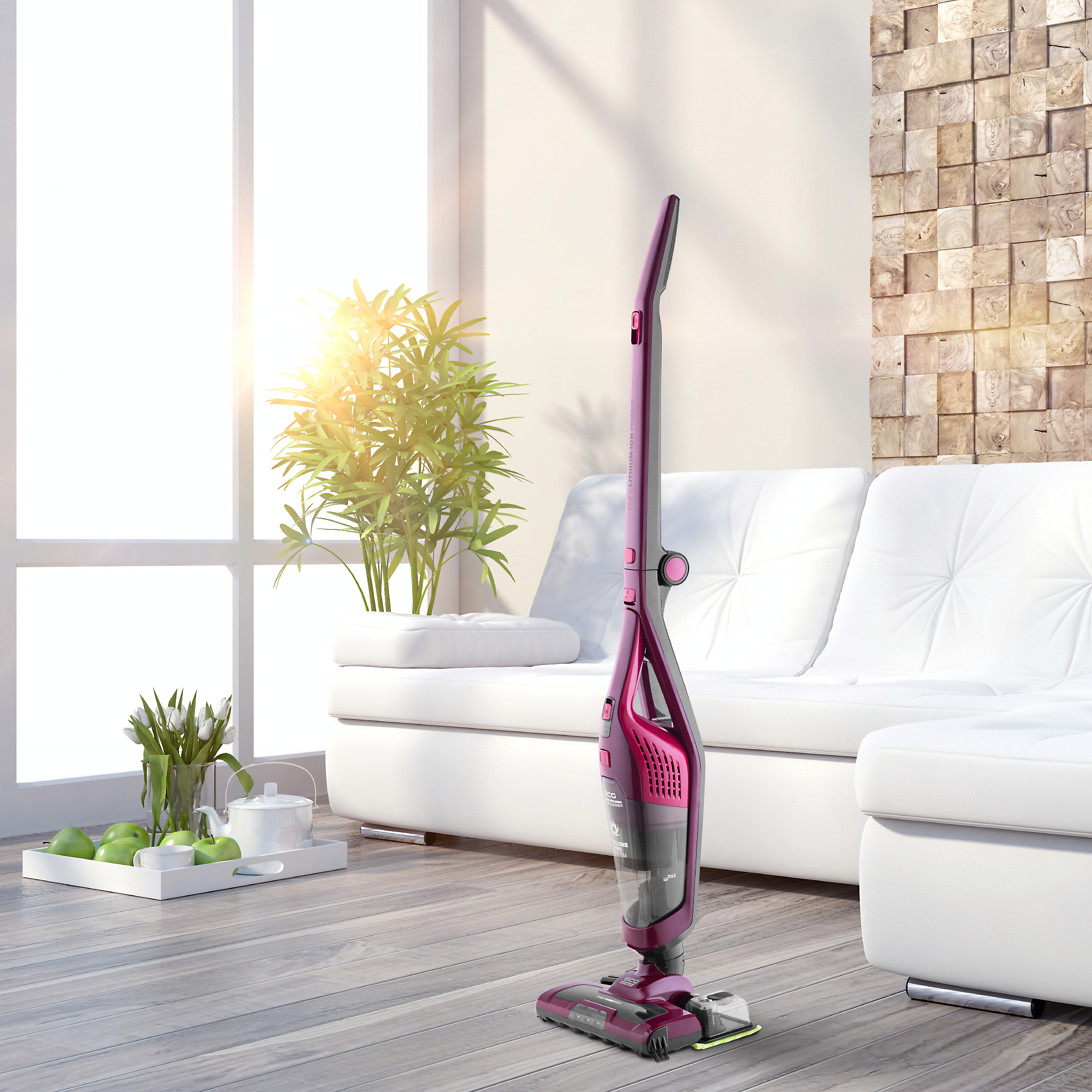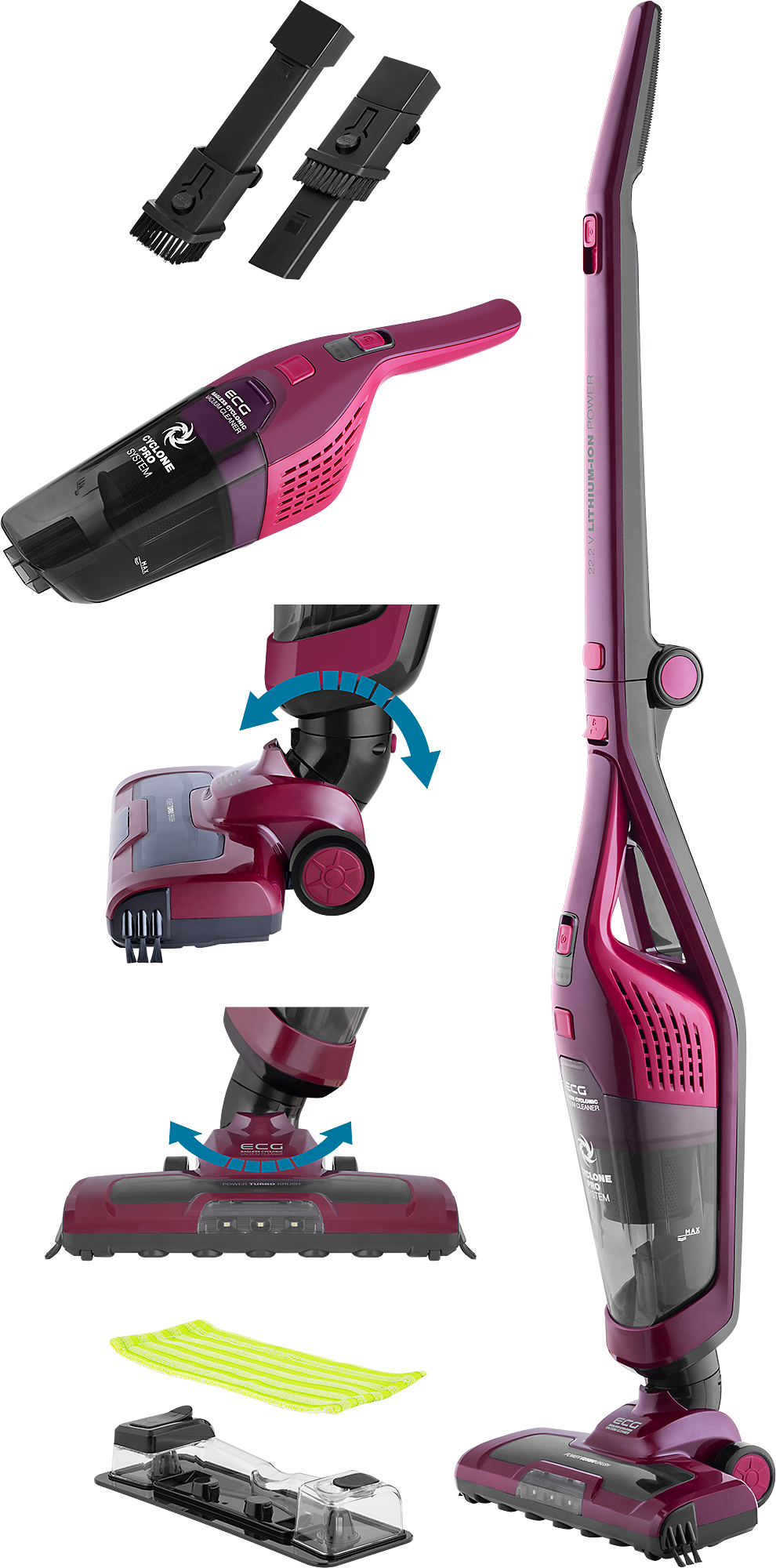 ECG stick vacuums are engineered to please, with every component designed to make your chores easier and more effective. At the heart of the appliance is a high-power two-speed motor developing up to 100 W of power. The motorized rotary brush further improves cleaning performance. Rounding out the set are practical features for ease of use, such as LED illumination of the work area, quality rubberized castors, and a folding handle. Overheat protection ensures safe operation.