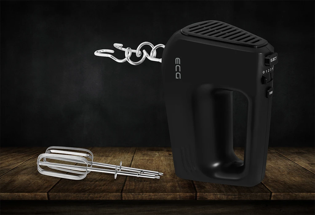 Ergonomiškos formos rankena, su kuria įrengtas šis plaktuvas, garantuoja patogų sukibimą ir leidžia puikiai valdyti įrenginį net ir ilgai naudojant. Dėl kompaktiško dizaino (aukštis 18,9 cm, plotis 8,6 cm, gylis 14 cm) ir mažo svorio (tik 1,18 kg) galima be vargo atlikti sudėtingesnius receptus. Paskutinis, bet ne mažiau svarbus dalykas – tikrai įvertinsite pakankamai ilgą maitinimo laidą (120 cm) ant plaktuvo, kuris suteiks laisvės, reikalingos dirbant virtuvėje. Plaktuvas taip pat džiugins savo lengvu valdymu – tereikia perjungti greičio parinkiklį į norimą lygį ir įrenginys pradės maišyti.