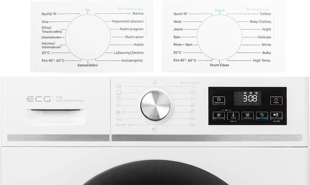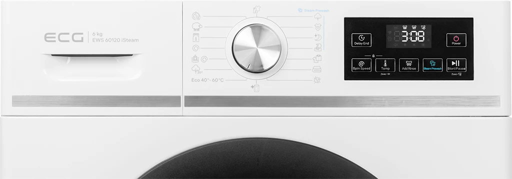ECG EWS 60120 iSteam perilica rublja koristi naprednu tehnologiju Steam PreWash. Ovo je posebno predpero s parom, u kojem se u bubanj ubrizgava mala količina vode, koja potpuno uranja grijaći element. Naknadnim zagrijavanjem stvara se para s temperaturom od 60 °C, koja prodire duboko u vlakna Vašeg rublja. Ova para učinkovito otapa mrlje, uklanja neugodne mirise i istovremeno sterilizira rublje. Otopljene nečistoće se naknadno isperu s površine tekstila i cijeli proces se nastavlja normalnim programom pranja. A rezultat? Savršeno čisto, svježe i higijenski tretirano rublje koje ostaje ugodno mekano na dodir i zaštićeno od nepotrebnog habanja.