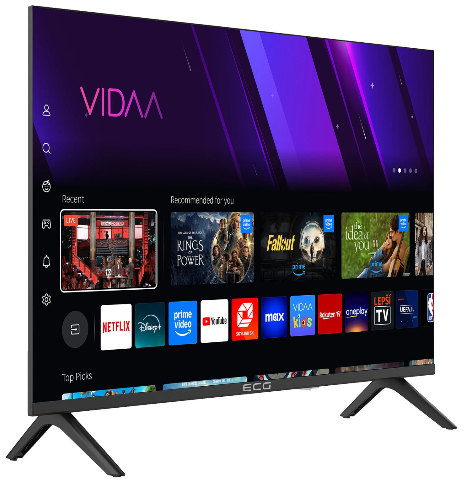 Srdcom televízie ECG 32 FSV252 je vyspelý operačný systém VIDAA U9, ktorý vás nadchne v mnohých ohľadoch. Štartuje niekoľko sekúnd a aj potom funguje krásne svižne. Tiež prináša prehľadné menu, v ktorom sa bez problémov zorientujete. A hlavne vám otvára dvere k celému radu obľúbených streamovacích platforiem a ďalších šikovných služieb. Podporovaný je Netflix, YouTube, Disney+, Amazon Prime Video, a dokonca aj slovenské aplikácie ako Oneplay, Skylink Live TV, Lepšie.TV, Sledovanie TV a mnoho ďalších.