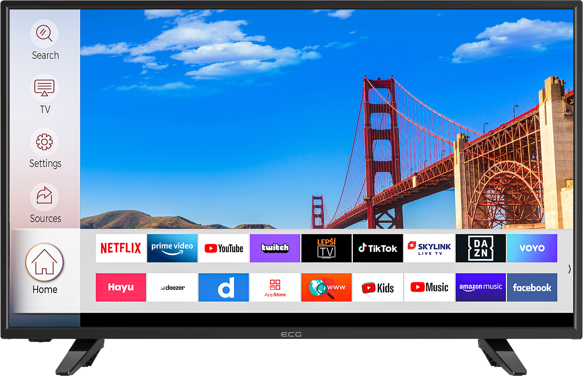 Popri možnosti sledovania klasických TV programov z pozemného vysielania, káblovky a satelitu (tunery DVB-T2/C/S2) vám televízor ECG 43FSL231 otvorí bránu aj k množstvu ďalšej audiovizuálnej zábavy. Dá sa totiž pripojiť na internet (pomocou kábla a konektora LAN aj bezdrôtovo cez Wi-Fi) a je vybavený prehľadným operačným systémom Linux. Ten vás zavedie k celému radu moderných smart funkcií, z ktorých si to svoje vyberie každý člen vašej rodiny – k dispozícii tu máte množstvo populárnych aplikácií, vr. YouTube, Netflix či Amazon Prime Video.