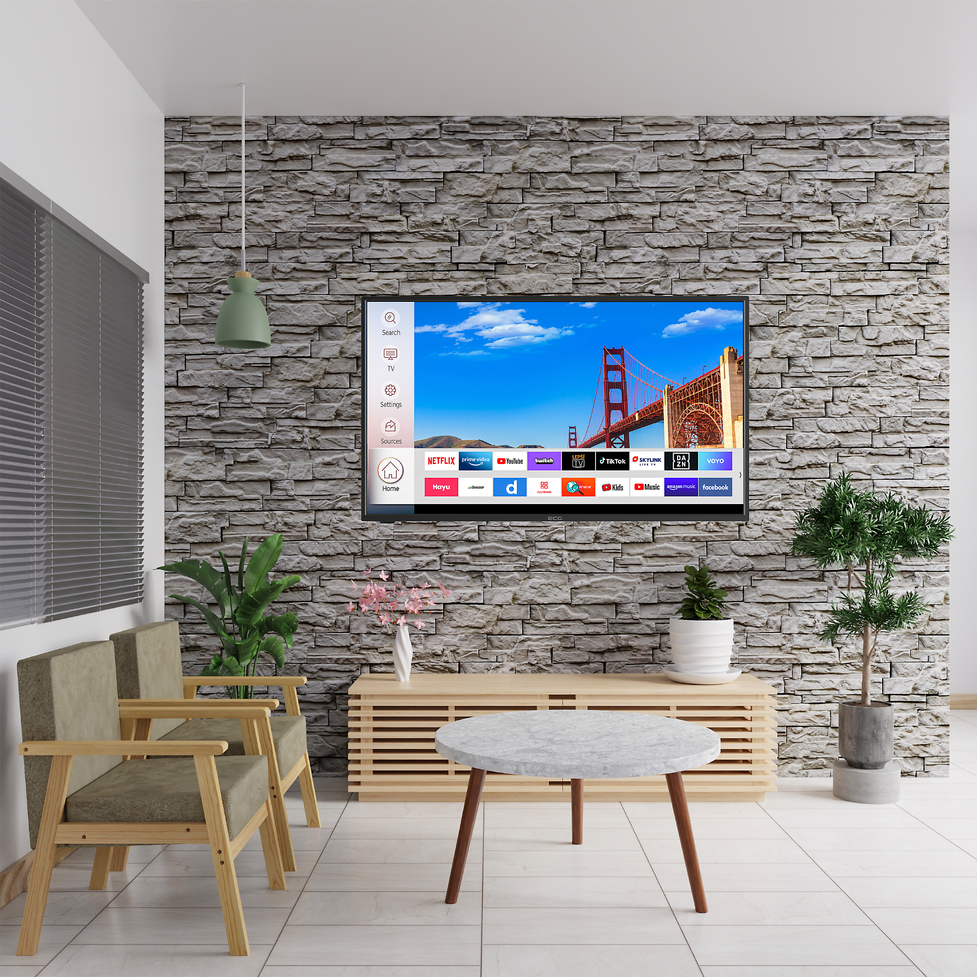 Popri už zmienenom optickom zvukovom výstupe a slúchadlovom konektore ponúka 43-palcový televízor ECG aj 2 HDMI porty, takže k nemu môžete jednoducho pripojiť napríklad notebook, prehrávač Blu-ray či DVD, hernú konzolu alebo vďaka technológii ARC aj soundbar. A pretože v konektorovej výbave prístroja nechýba ani rozhranie USB, máte možnosť prehrávať aj vlastné multimédiá z prenosných flash diskov – podporovaných je množstvo formátov videí, zvuku aj fotografií.
