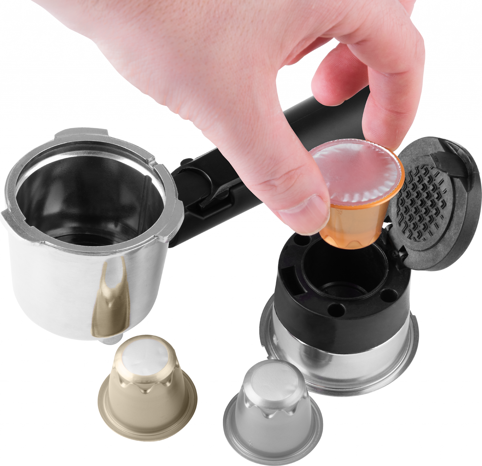 Súčasťou balenia je aj filter na E.S.E. kapsuly – Easy Serving Espresso. Iste však oceníte aj kompatibilitu s kapsulami Nespresso. Antikorový filter práve na tento druh kapsúl vo výbave totiž nájdete tiež, čo využitie prístroja ešte rozširuje a vám umožňuje urobiť si ešte väčšie a pestrejšie množstvá kávy a ich variácií.