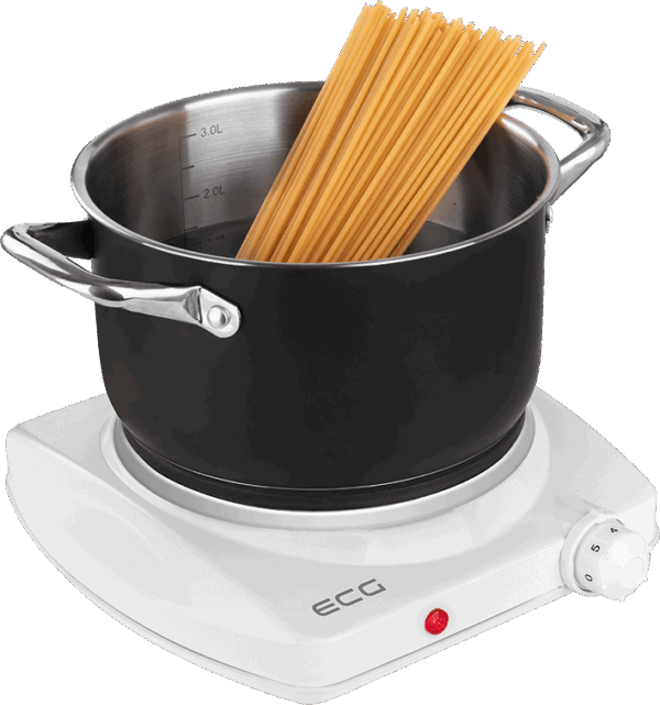 Používateľmi obľúbená elektrická jednoplatnička je skvelým pomocníkom do garsónok, na chalupy alebo do kempov. Značka ECG predstavuje elektrický varič EV 1512 v bielom celokovovom vyhotovení. Aj napriek jeho kompaktným rozmerom máte k dispozícii varnú plochu s priemerom 18,5 cm dosahujúcu maximálny výkon 1 500 W. Na platňu tak môžete postaviť stredne veľký hrniec či panvicu. Aj na chate si preto na raňajky pripravíte obľúbené miešané vajcia a uvaríte čerstvú kávu.