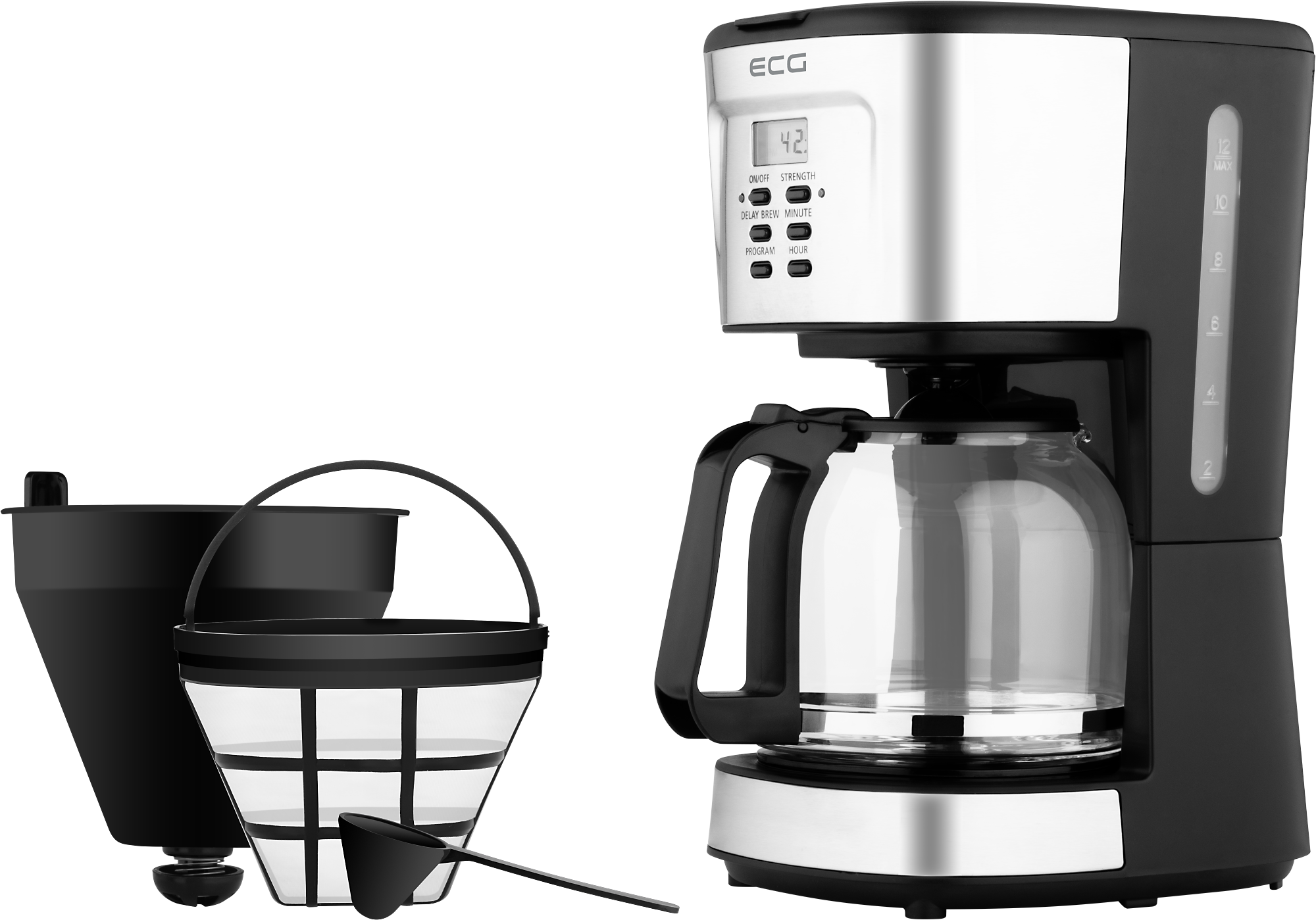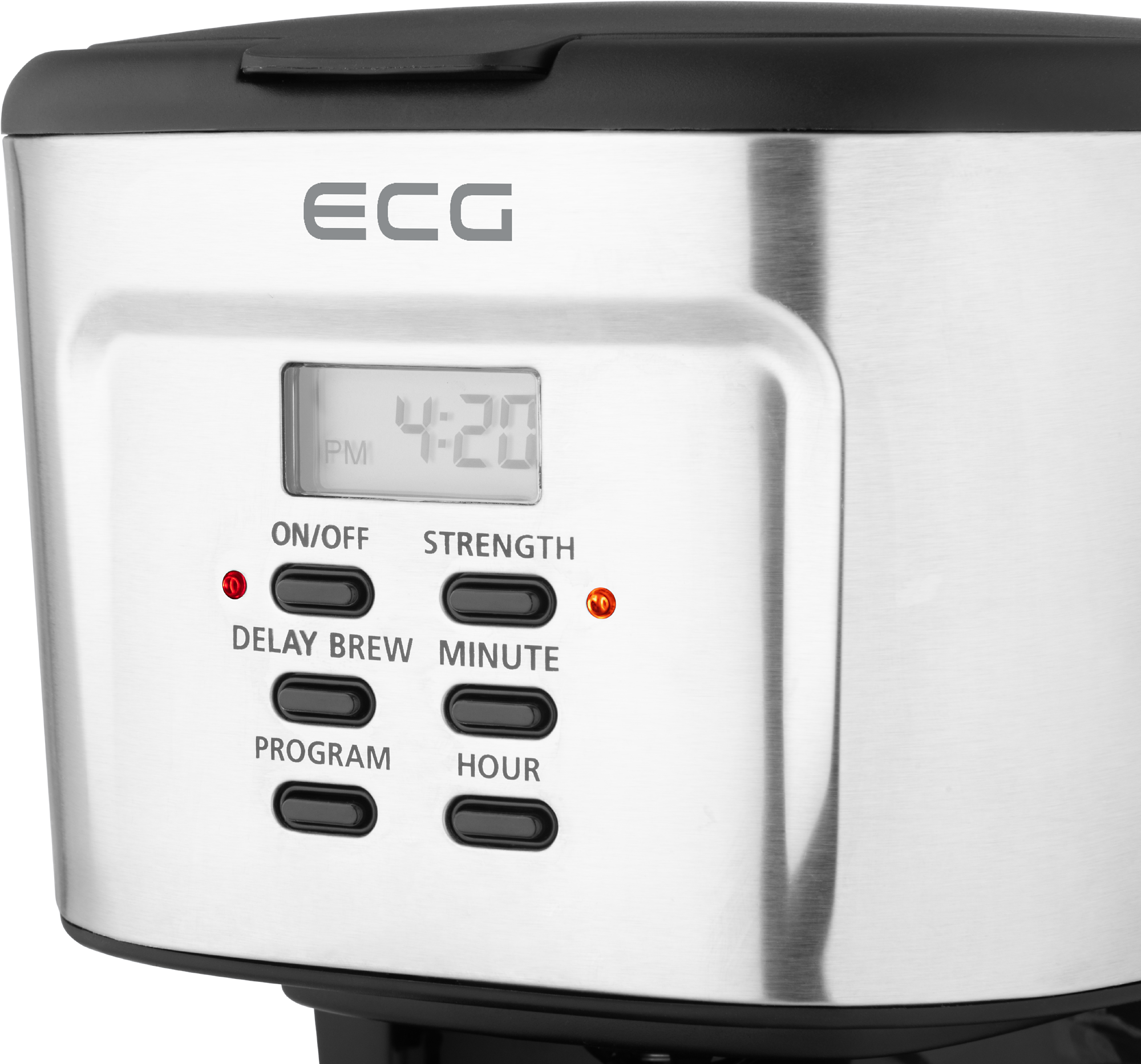 Obsluha prekvapkávača ECG je za všetkých okolností jednoduchá a bezproblémová. Súčasťou tohto kuchynského pomocníka je totiž intuitívny ovládací panel, ktorý pozostáva z niekoľkých jednoduchých tlačidiel a prehľadného LCD displeja. Na kávovare nájdete celkovo 6 funkčných tlačidiel. Okrem iného tu nechýbajú tlačidlá na nastavenie vyššej intenzity kávy, aktiváciu odloženého štartu či voľbu času, keď má prekvapkávanie kávy prebiehať.