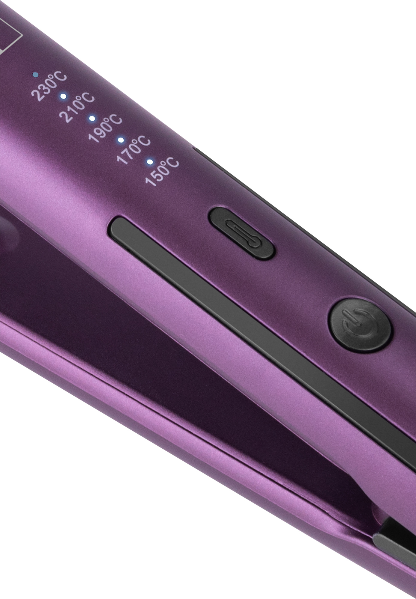Vďaka piatim úrovniam nastavenia teploty (150 ° C, 170 ° C, 190 ° C, 210 ° C a 230 ° C) ľahko prispôsobíte žehlenie presne svojim potrebám. Či už máte jemnejšie, alebo silné a nepoddajné vlasy, žehlička si s nimi poradí. Svetelné LED indikátory vás pritom prehľadne informujú o aktuálne zvolenej teplote, a tak máte všetko pekne pod kontrolou. Žehlička pracuje s príkonom 48 W.