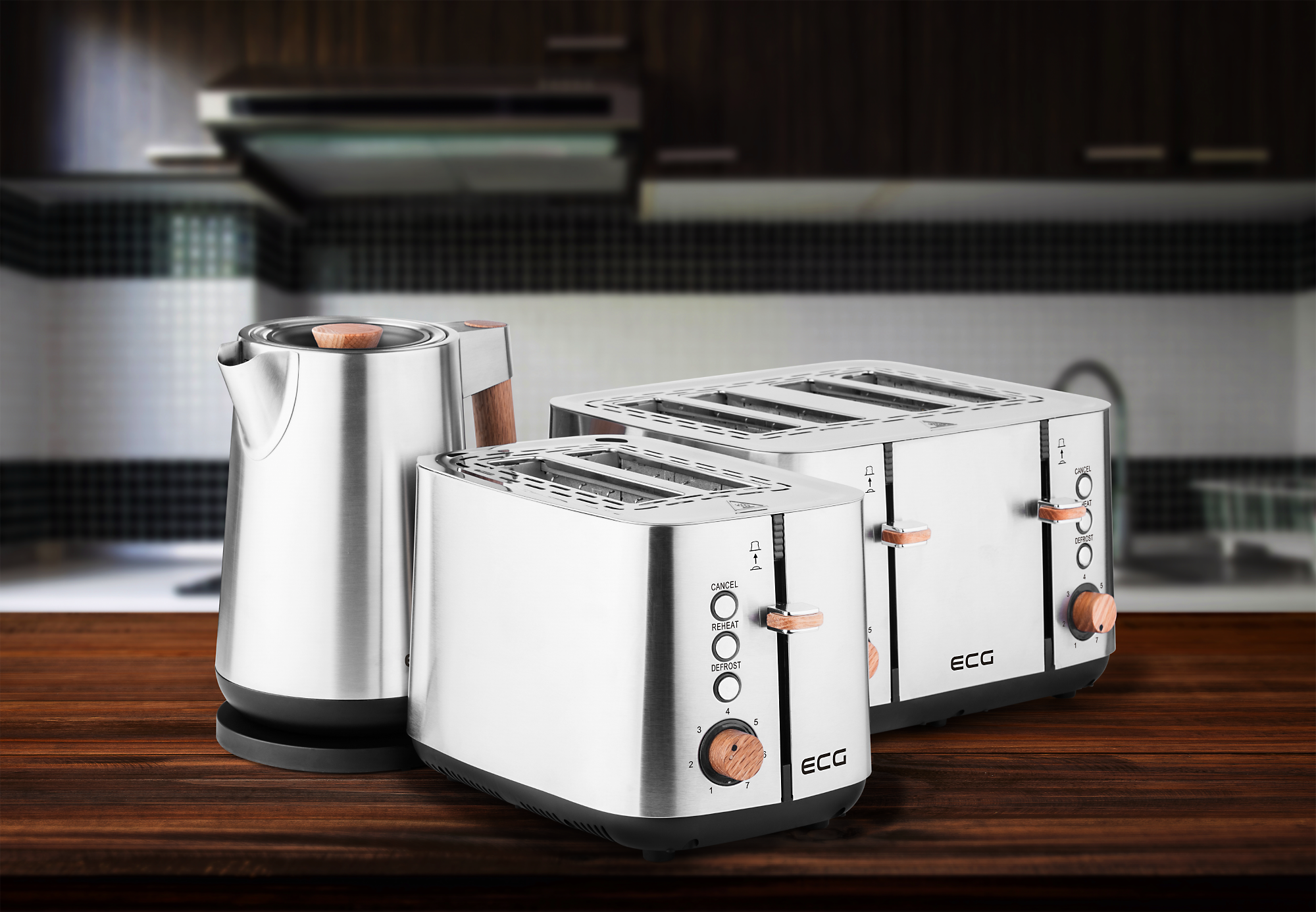 ECG Timber Series je rad produktov, v ktorom sa snúbi štýl s praktickosťou. Jeho súčasťou sú malé kuchynské spotrebiče, ktoré si získajú vaše srdce svojím vyšperkovaným dizajnom aj premyslenou funkčnosťou – s ich pomocou si môžete dnes a denne s celou rodinou pripravovať raňajky, ktoré milujete.