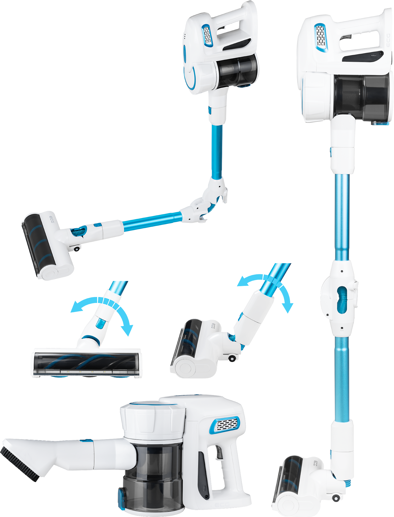 S týmto tyčovým bezvreckovým vysávačom je upratovanie domácností úplnou hračkou. Ide totiž o akumulátorový spotrebič, ktorý nepotrebuje žiadny prívodný kábel – jeho pohon je poháňaný pomocou vyberateľnej a vymeniteľnej výkonnej Li-ion 2 200 mAh batérie, a tak za sebou pri práci neťaháte žiadny drôt. Na jedno nabitie vám pritom spotrebič vydrží slúžiť až 30 minút. V prípade potreby však môžete využiť aj klasické sieťové napájanie. Jednoduchú prácu s vysávačom navyše ešte umocňuje nasávacia hubica s praktickým pohyblivým kĺbom – jeho zásluhou sa bez problému dostanete aj do horšie dostupných miest.