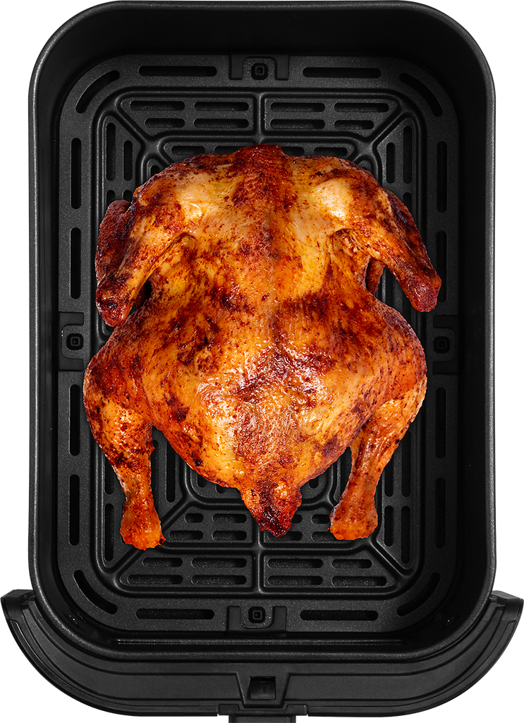 Napredna tehnologija 3D kroženja vročega zraka zagotavlja enakomerno porazdelitev toplote v vse smeri. Vroč zrak teče okoli vsakega kosa hrane in ustvarja popolnoma hrustljavo skorjo, hkrati pa ohranja sočnost v notranjosti. S to tehnologijo lahko dosežete rezultate, primerljive s profesionalnimi kuhinjami doma.