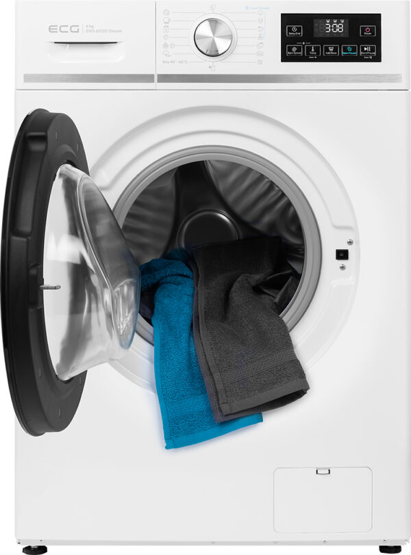 Pralni stroj ECG EWS 60120 iSteam uporablja napredno tehnologijo Steam PreWash. To je posebno predpranje s paro, med katerim se v boben vbrizga majhna količina vode, ki popolnoma potopi grelni element. Z naknadnim segrevanjem nastane para s temperaturo 60 °C, ki prodre globoko v vlakna vašega perila. Ta para učinkovito raztopi madeže, odstrani vonjave in obenem sterilizira oblačila. Raztopljene nečistoče se nato sperejo s površine tekstila in celoten proces se nadaljuje z običajnim programom pranja. In rezultat? Popolnoma čisto, sveže in higiensko obdelano perilo, ki ostane prijetno mehko na dotik in zaščiteno pred nepotrebno obrabo.