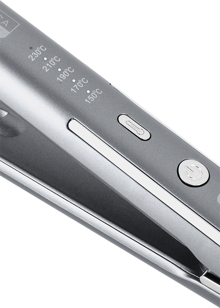 Zahvaljujoč petim stopnjam nastavitve temperature (150°C, 170°C, 190°C, 210°C in 230°C) lahko enostavno prilagodite likanje svojim natančnim potrebam. Ne glede na to, ali imate tanjše lase ali močne in neukrotljive lase, je likalnik kos temu. Svetlobni LED indikatorji vas jasno obveščajo o trenutno izbrani temperaturi, tako da imate vse pod nadzorom. Likalnik deluje z močjo 48 W.